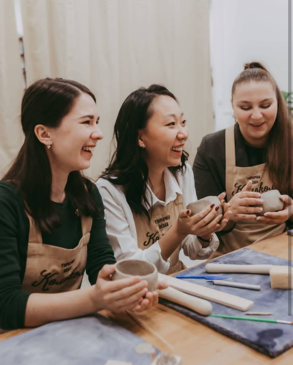 Создаете все вместе кружки, тарелки или другие формы на гончарном круге или лепкой. Мастер уделяет внимание каждому.