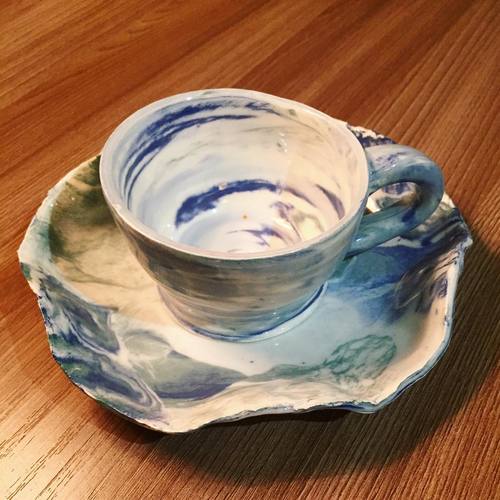 @ninekrasЕщё в октябре сделала пиалку и блюдечко в технике нерикоми, да все не было настроения вам их показать ?Путем смешения разных цветов глин образуются абсолютно непредсказуемые узоры. Каждое изделие неповторимо! А больше всего меня поразил кипельно белый цвет глины. Благодаря ей посуда становится очень нарядной! ?Как всегда спасибо @kolokolschool, скоро вновь приду к вам! ?#kolokolschool